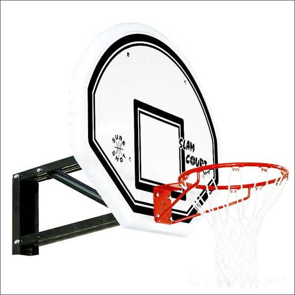 Sure Shot 569 wall mounted basketball goal is ideal for use in secondary schools, colleges and leisure centres and offers instant height adjustment with three height settings. Can be mounted to the wall or on a pole. Height can be set at 8', 9' and 10'. Complete with 65169 polypropylene backboard and 65261 ring. Compatible with 65160 polypropylene backboard and 63277 ring. Weight 25kg. Product Code 65569.